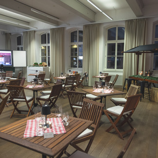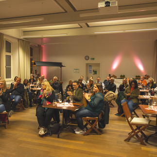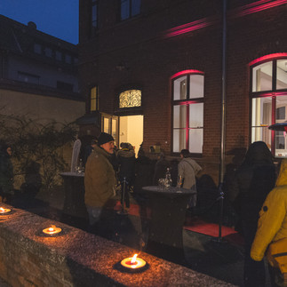 Ein Highlight der Produktion:Das Rheingauer Startup CM Plus events unter Leitung von Colin Frambach  und Max Schubert verwandelte den Hörsaal 3 der Hochschule Geisenheim in ein authentisches Heurigen-Ambiente – mit Holz, warmem Licht, Dekoration und viel Liebe zum Detail.